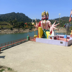 Lake / Talab with big Hanuman Statue - Mandi, H.P.