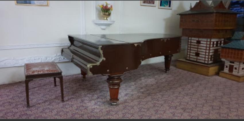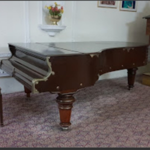 Colonial architecture, piano and other antique props.